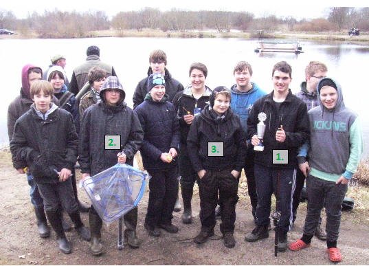 Den Jugendlichen aber half dies wenig. Lediglich Mathis Stangier konnte davon profitieren, daß er den Endplatz auf der östlichen Seite des Sees - direkt am Übergang zum südlichen Ufer - gezogen hatte. So konnte Mathis gegen Ende des Angelns sein Ergebnis noch auf sechs Forellen hochschrauben. Damit war er der klare Sieger des Forellensee-Cups 2012. Auf den Plätzen folgten Eggert Vöske (2. / 880 Gramm), Caspar Ehlers (3. / 750 Gr.) und Ben Karstens (4. / 740 Gr.).